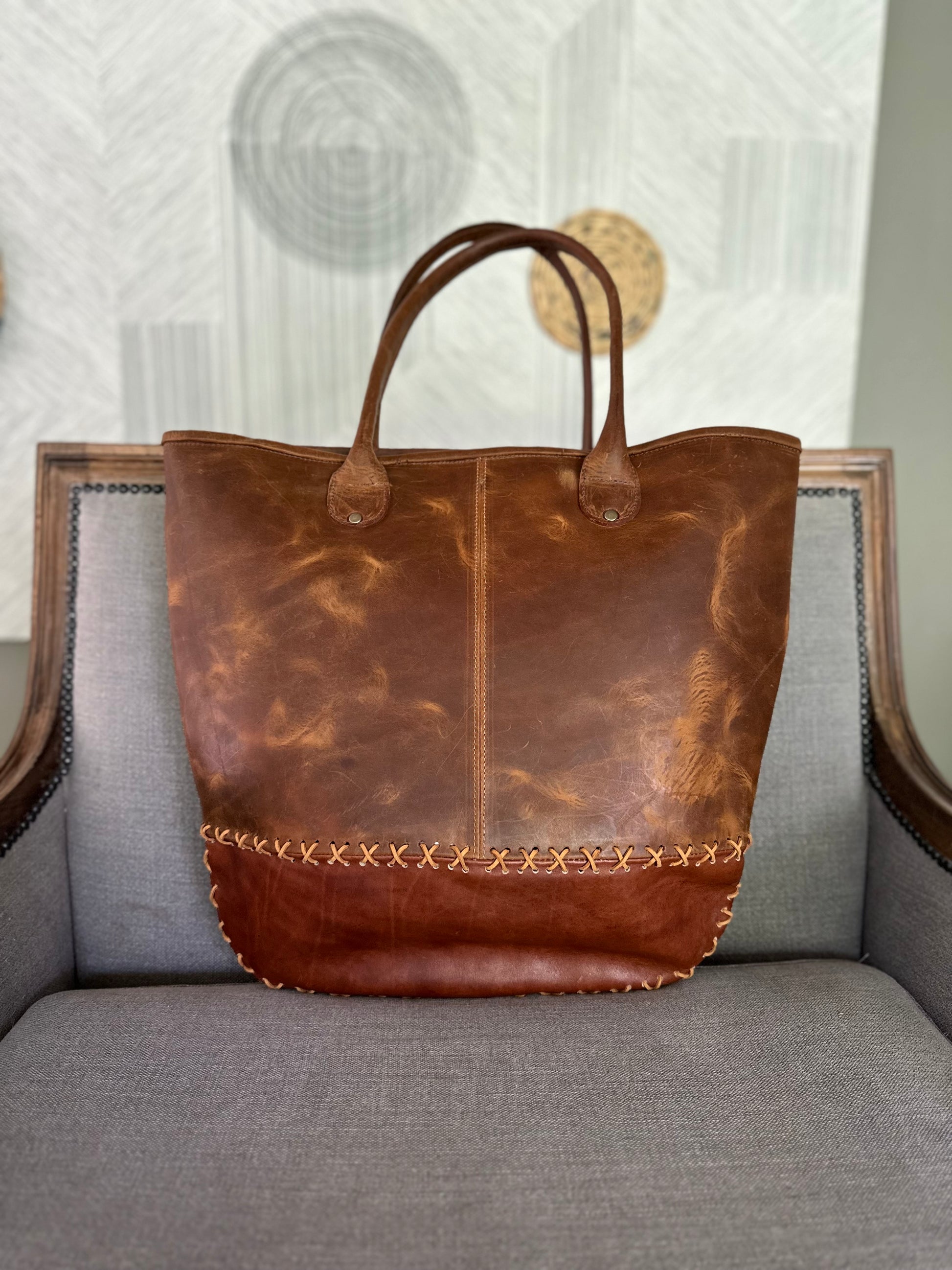 Esta cartera Canela está confeccionada en cuero tostado encerado con una pátina natural única. Tiene un sofisticado diseño, con aplicaciones de cruces en gamuza y piel que añaden un toque distintivo y elegante. Su elaboración artesanal es magnífica y la convierte en una pieza versátil para el uso diario o formal. Acabado impecable que refleja atención al detalle y excelencia en cada aspecto.