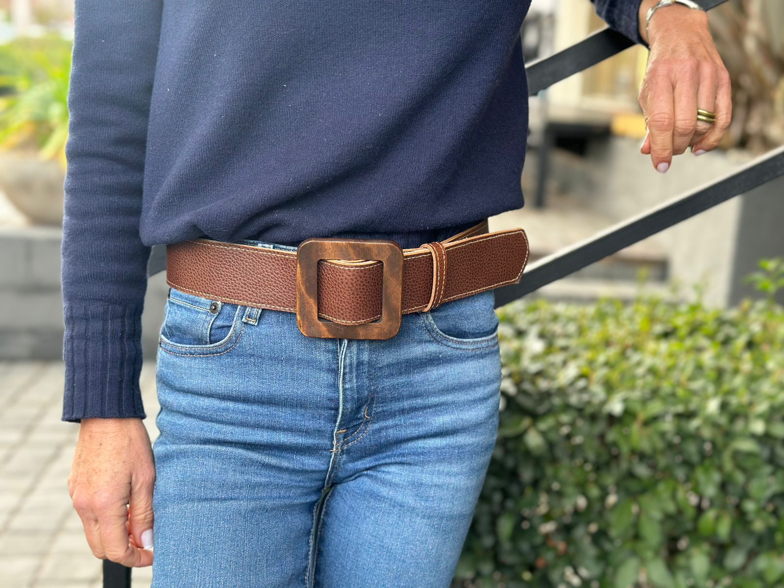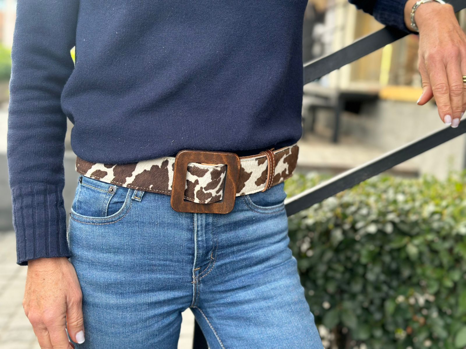 Este cinturón Ana es reversible. Una combinación en cuero, color moca y piel de vacuno. Lo puedes usar por ambos lados. Un diseño increíble para tener dos cinturones en uno.
