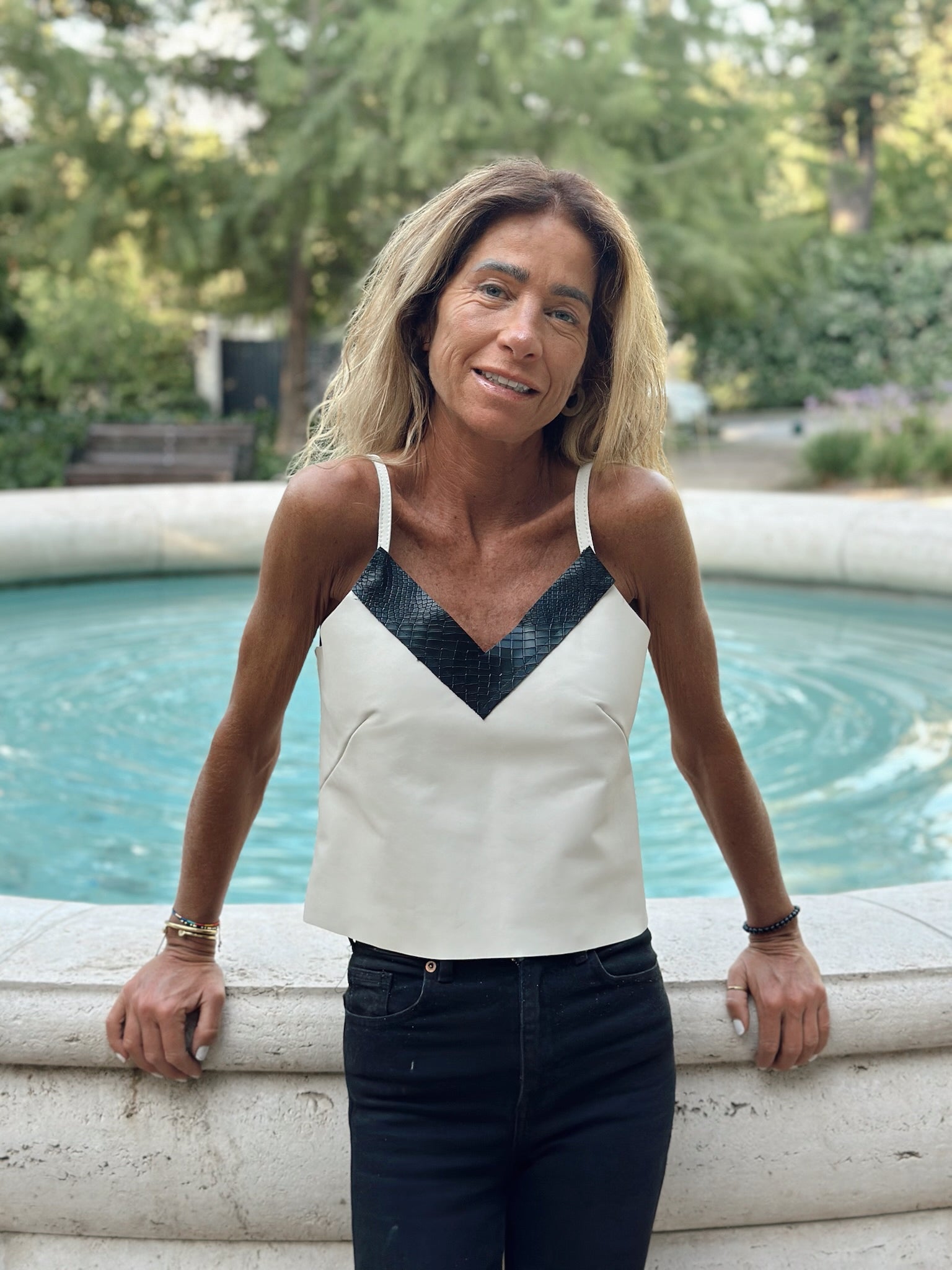 Este crop top es una maravilla, con la mezcla de colores entre el crudo y su textura snake en el escote.