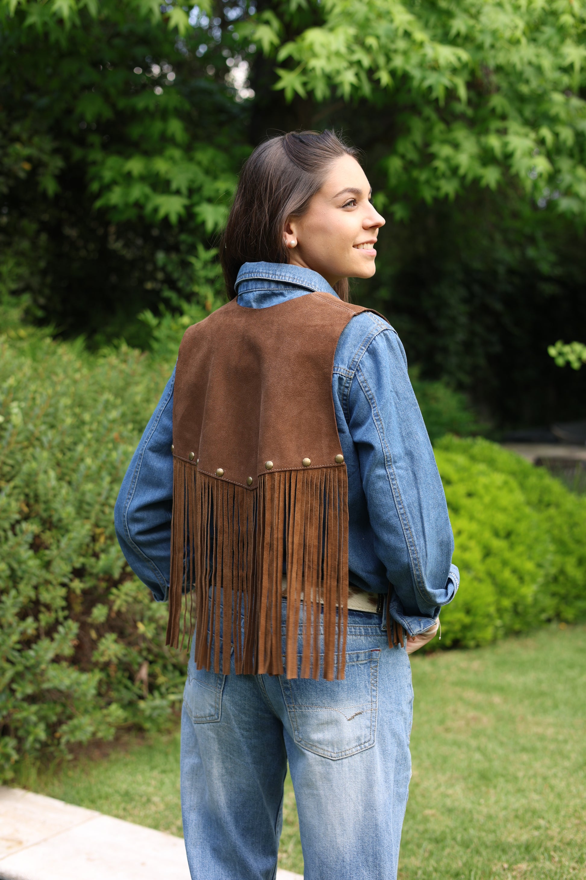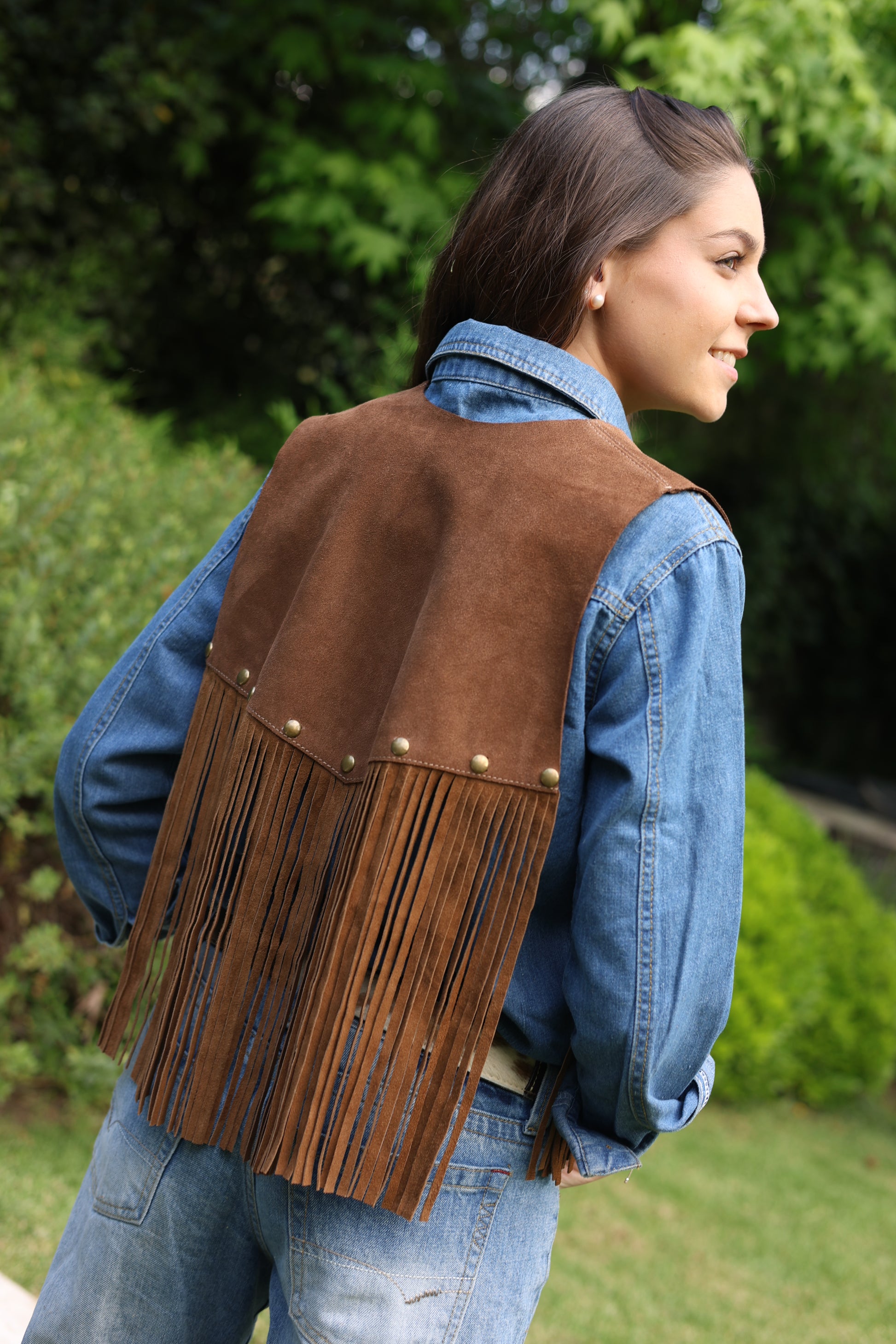 Descubre este Neck, una pieza única que combina gamuza en tono moca con detalles de tachas y flecos en gamuza color habano para un look estupendo y atrevido. Perfecto para darle un toque divertido y con estilo a tu outfit, ideal para quienes buscan destacar con un diseño original y lleno de personalidad. ¡Atrévete a jugar con texturas y colores que expresan tu espíritu libre!