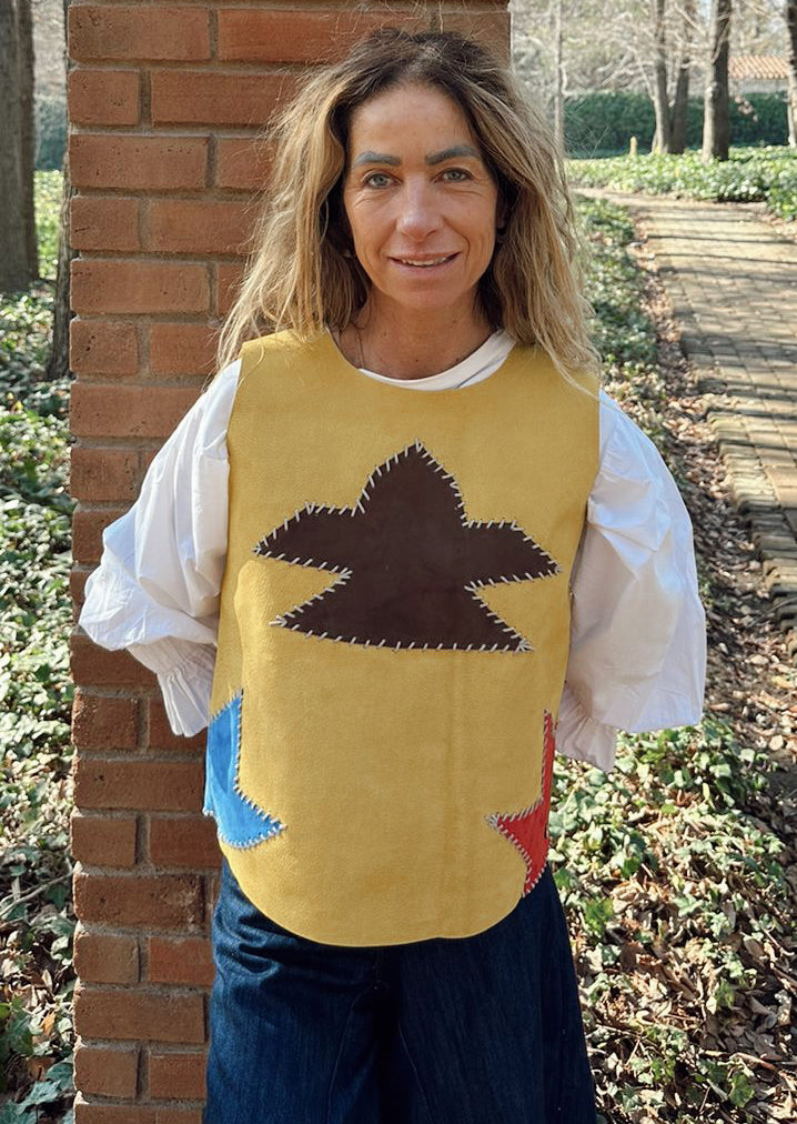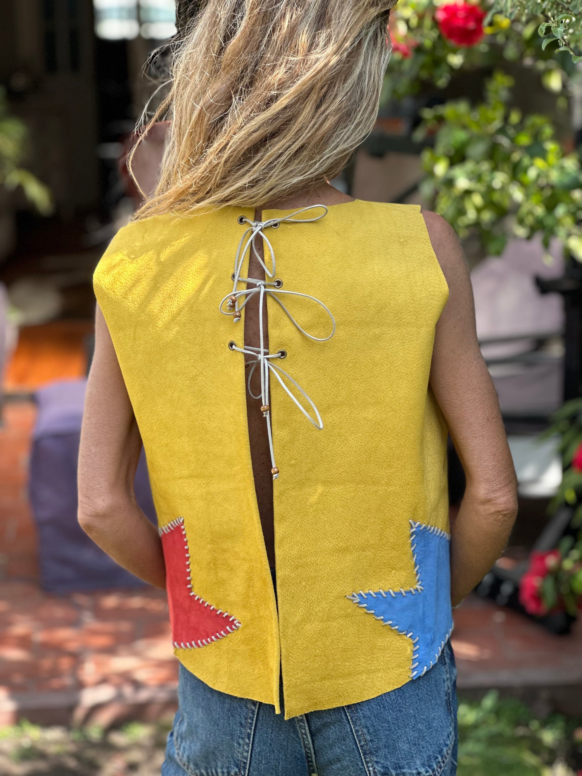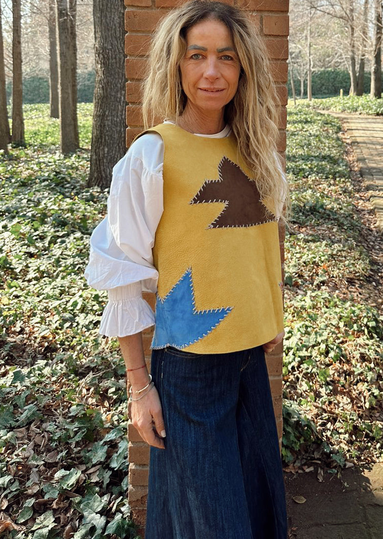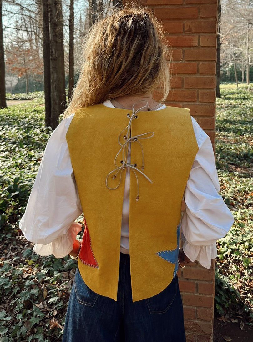 El Top Antonia Étnico con aplicaciones en distintos tonos lo, hacen único. Tiene su detalle precioso en las amaras de su espalda, dejando que se pueda usar con su parte trasera adelante. Lo puedes usar solo o con algo debajo.
