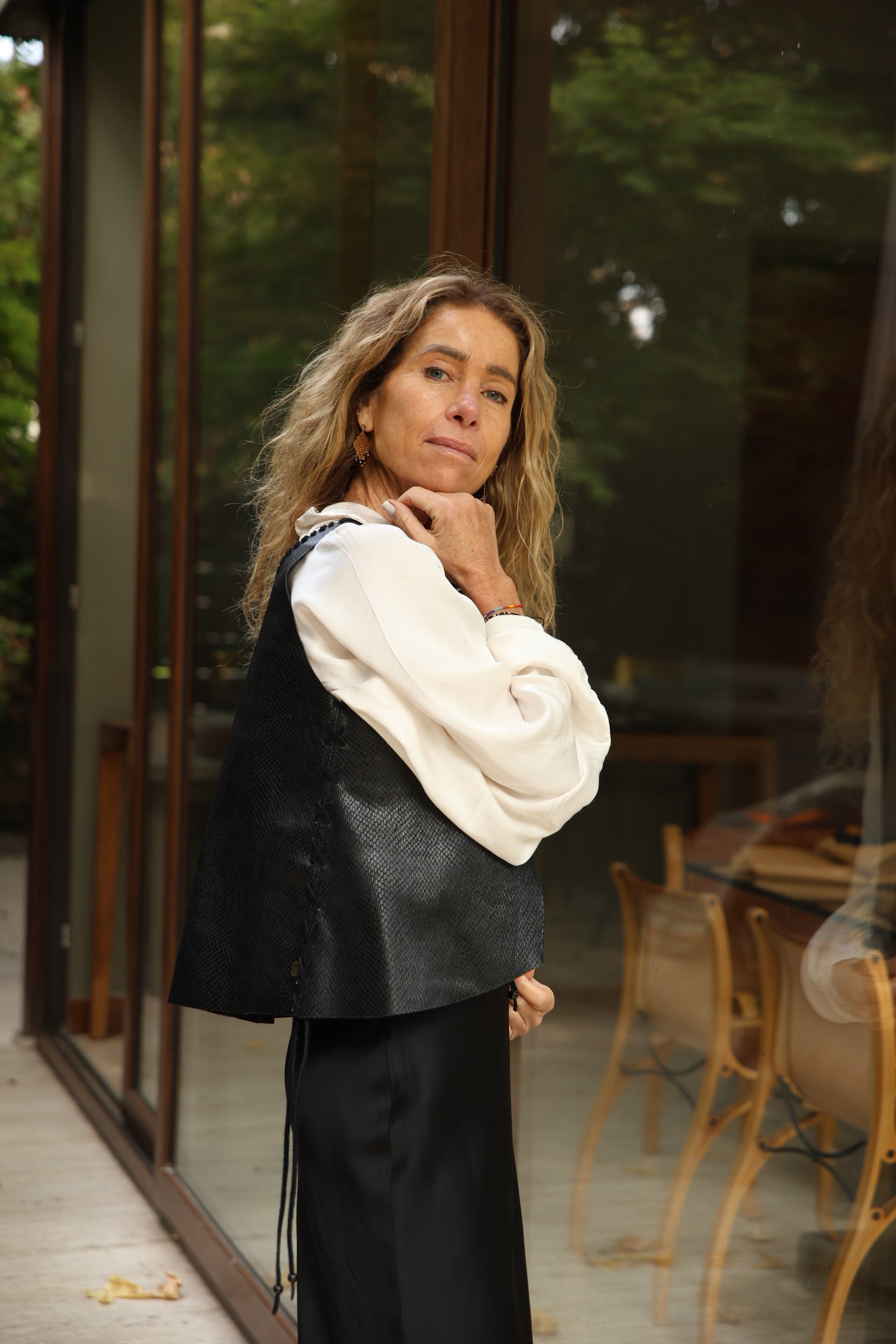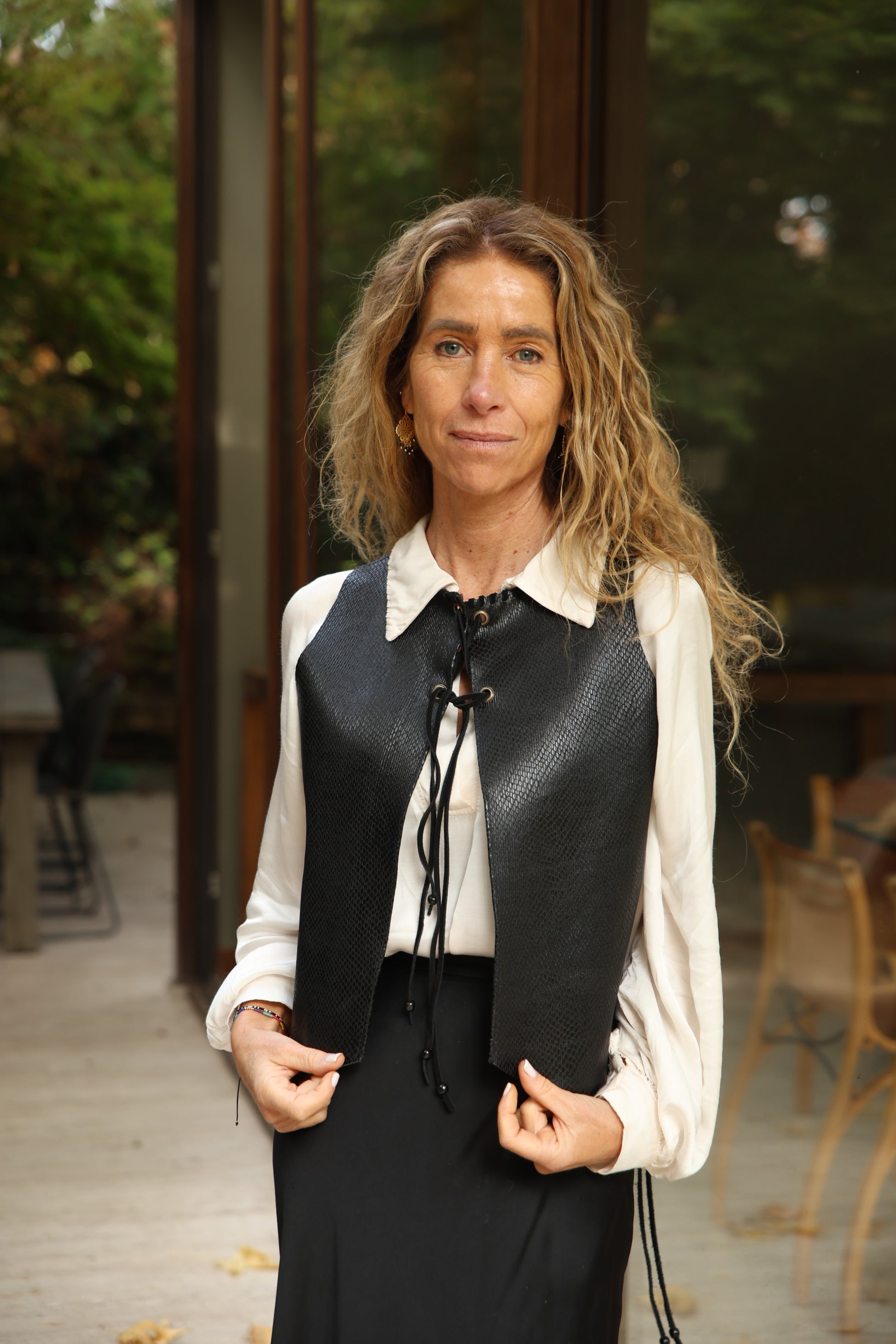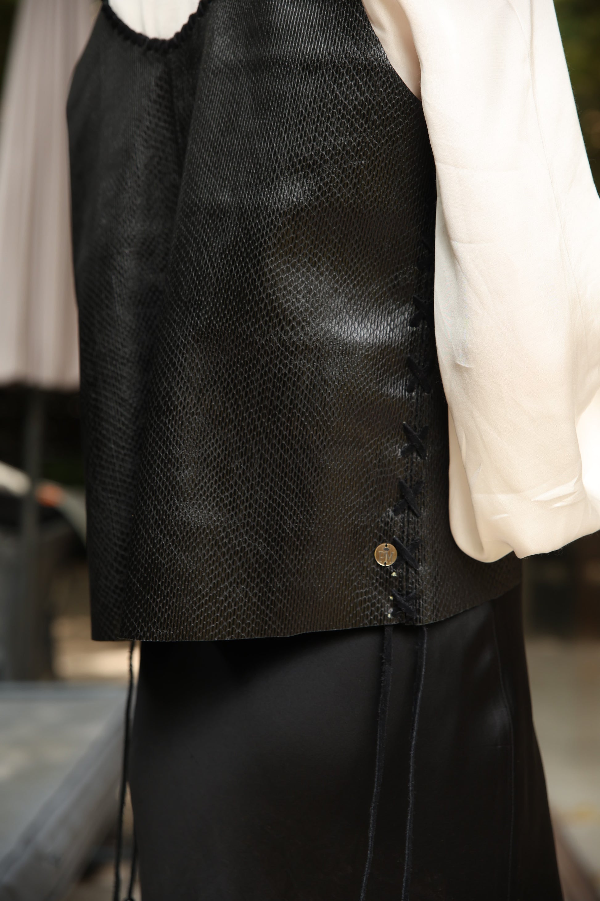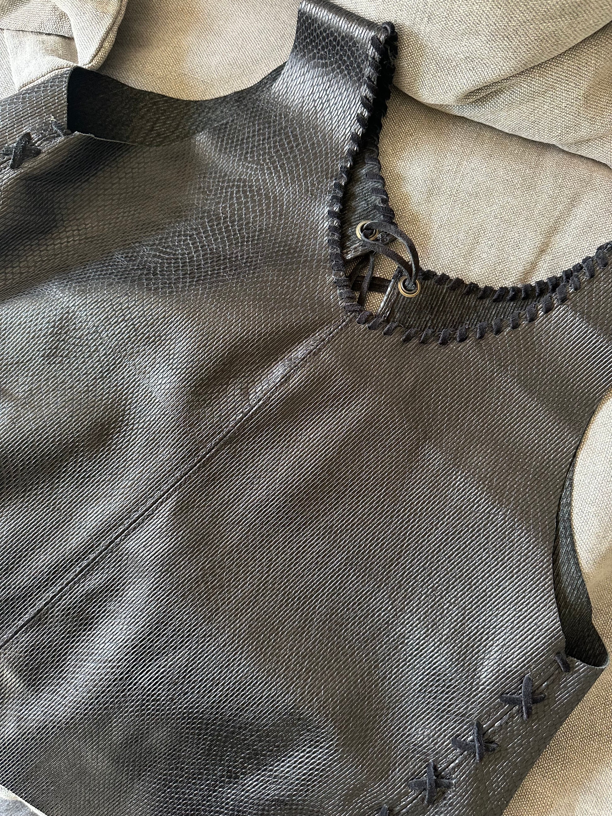 Este elegante y moderno top /gilet ,en cuero snake de color negro es el complemento perfecto para cualquier atuendo. Su anudado en la espalda, le brindan un ajuste cómodo y estiloso, el que puedes usarlo como top o un novedoso Gilet. Experimenta con la moda, Viste la libertad!!!