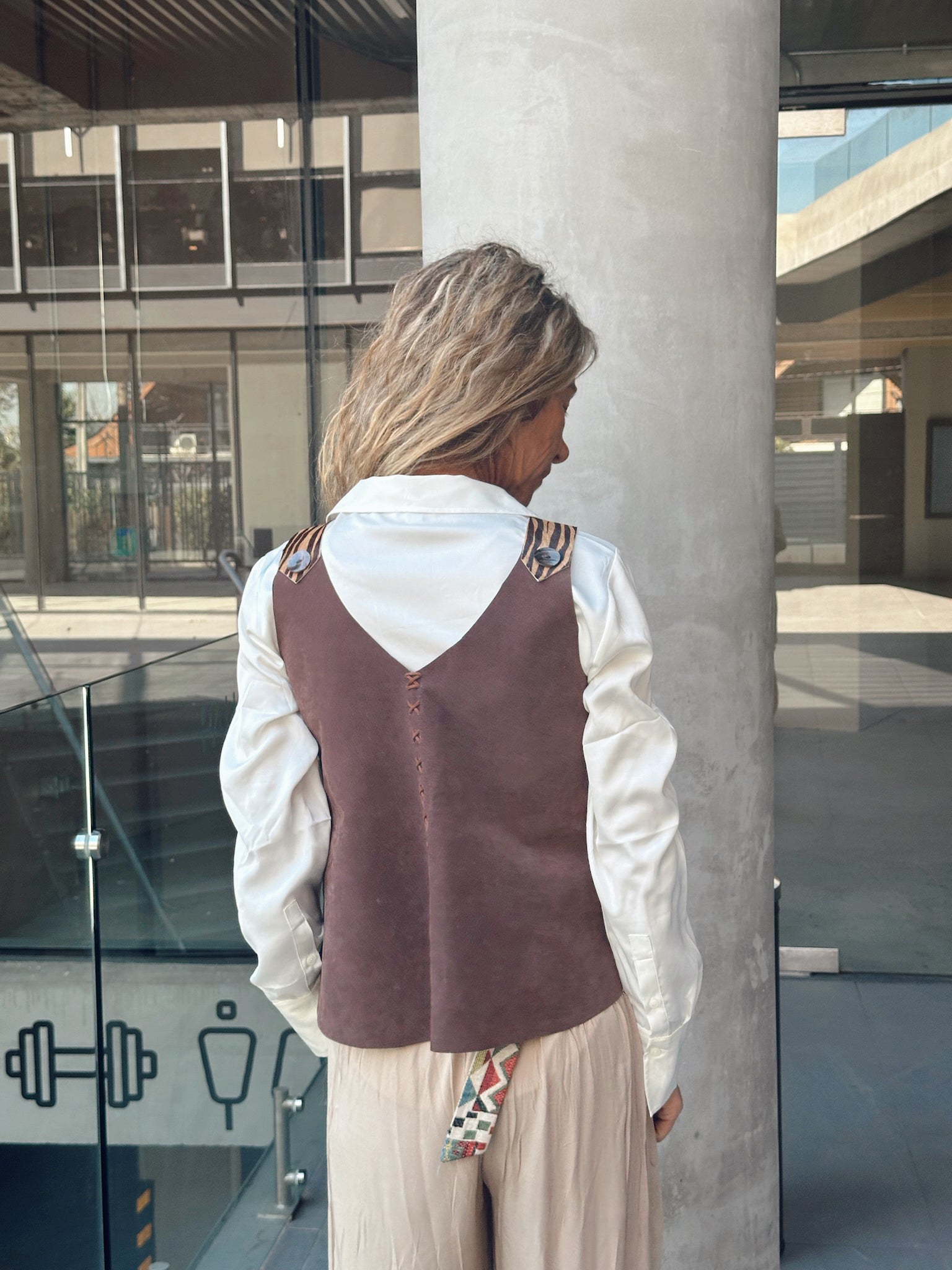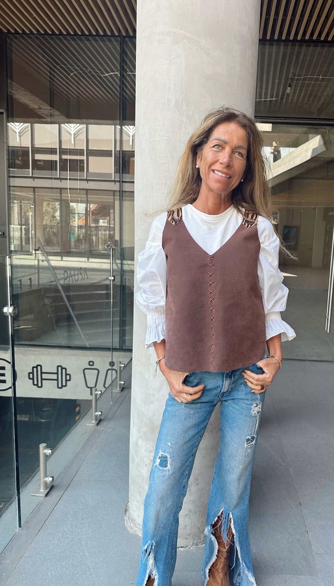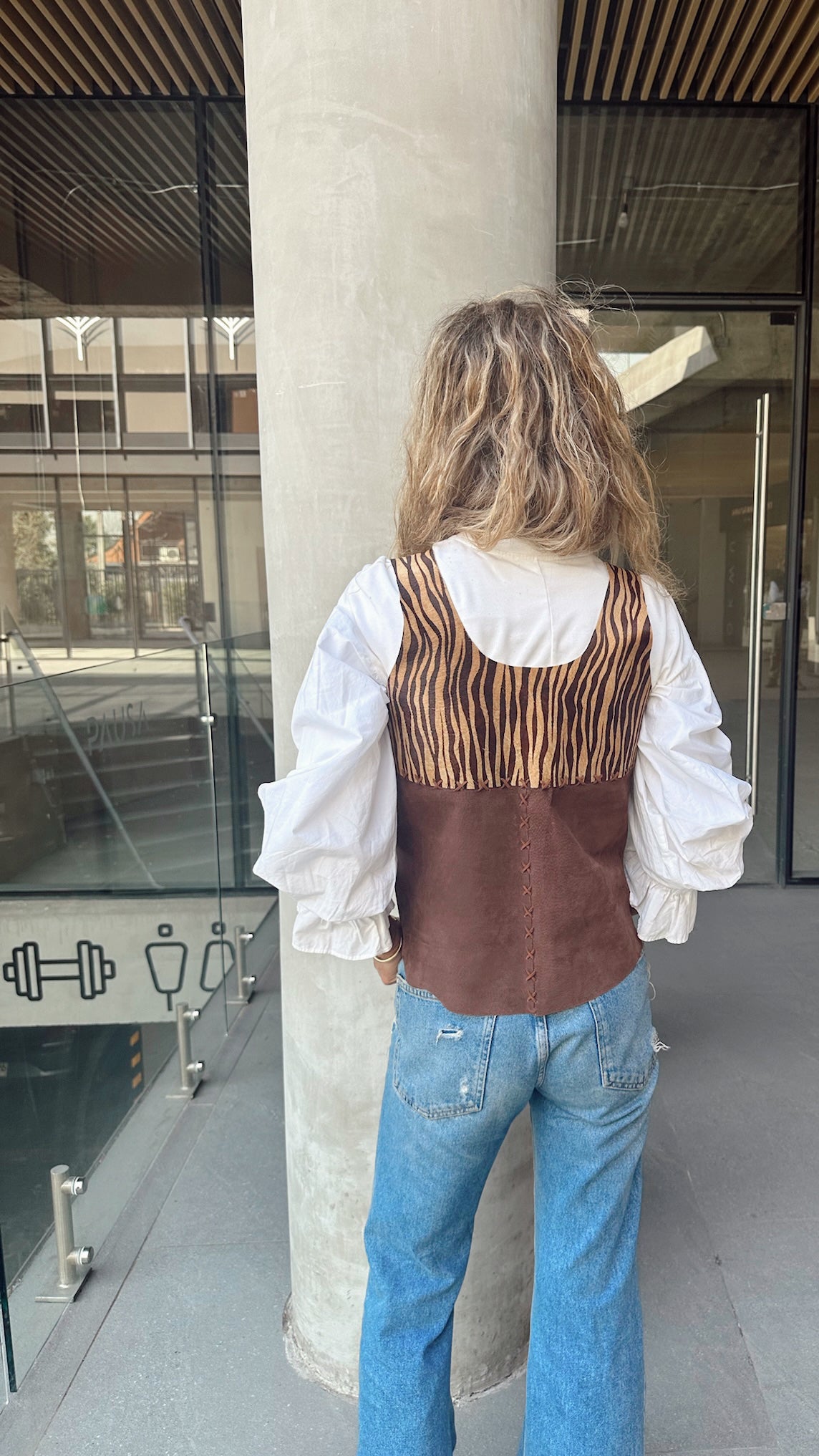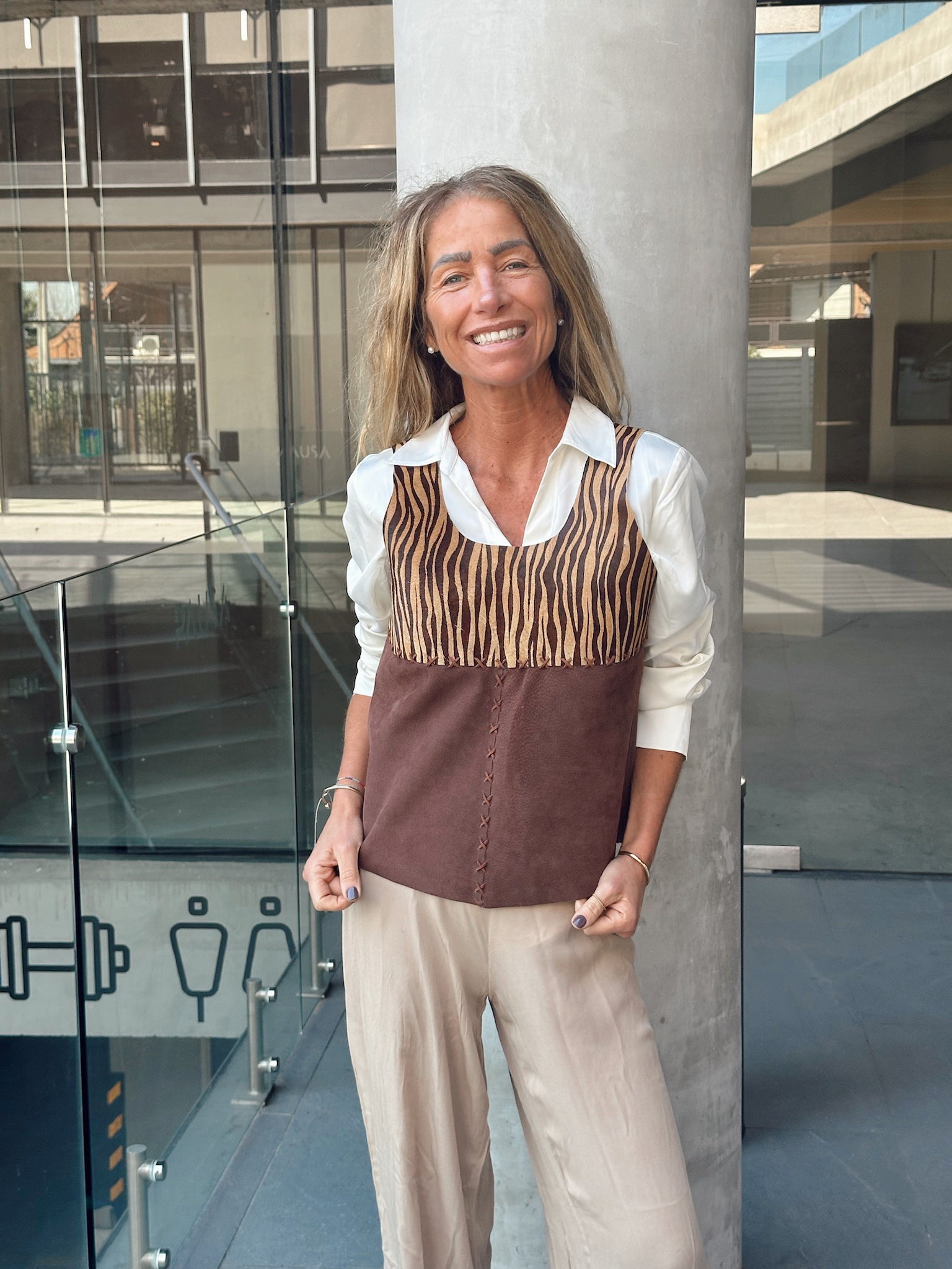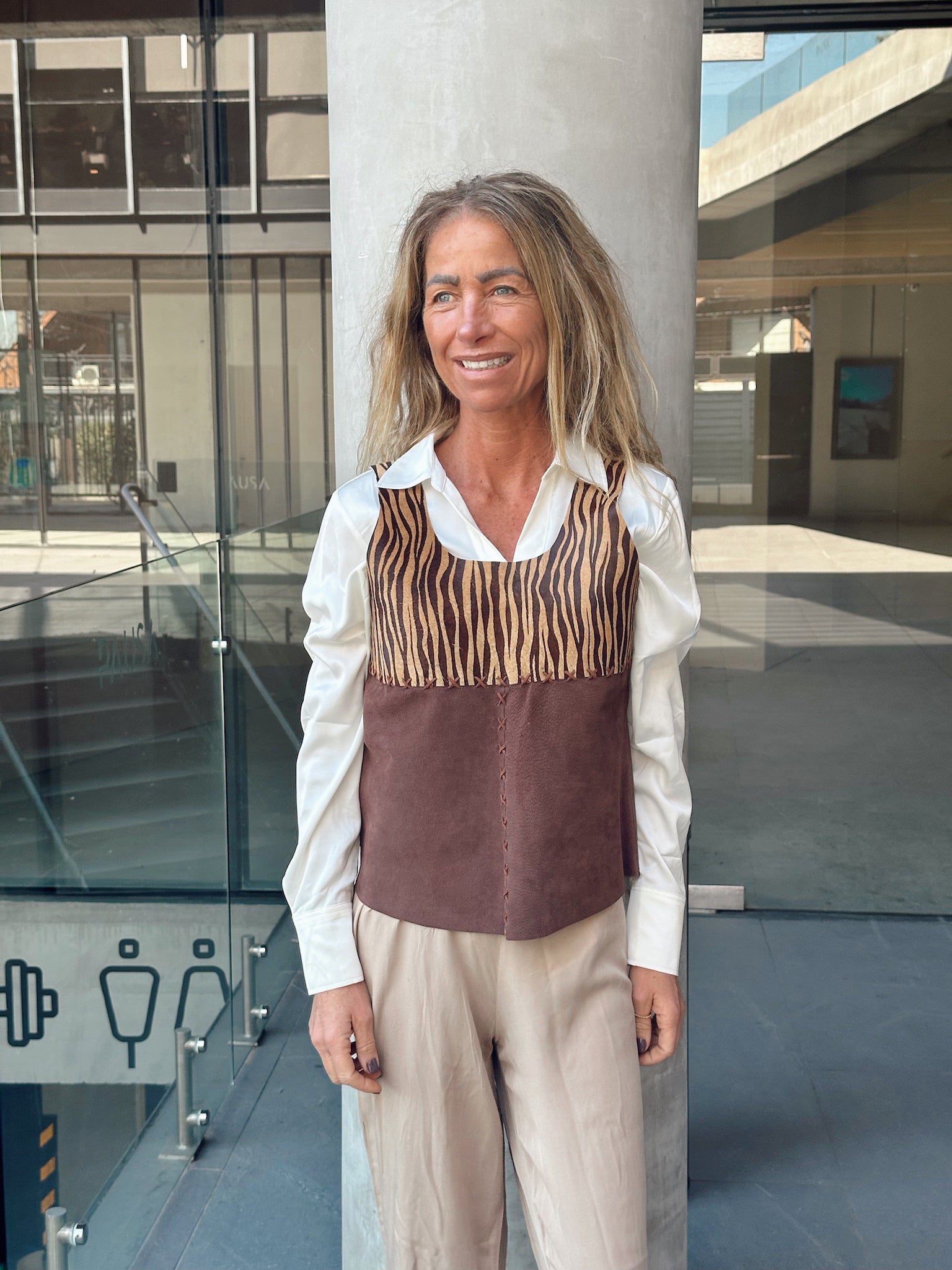 Top carpincho café y piel cebra, diseñado para usarlo por ambos lados.